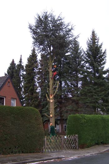 Spezialbaumfällung in Schwierigen Verhältnissen mit Klettereinsatz oder Hebebühne, sowie auch Beseitigung von entstandenen Schäden Durch Elementarereignisse. Umgestürzte Bäume werden in Form von Notdienstleistungen (0-24 Uhr) auch Sonn- und Feiertags von uns übernommen. Abrechnung über Versicherungen sind selbstverständlich möglich.